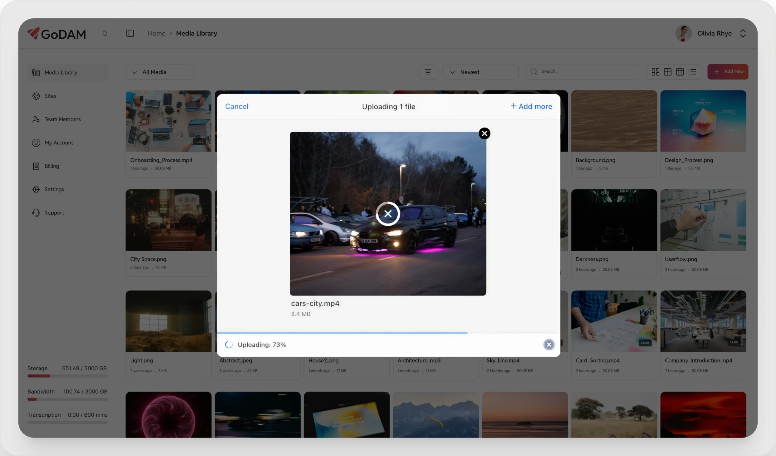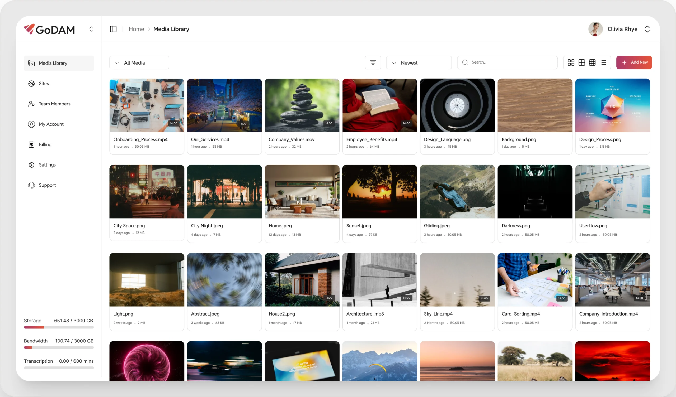 Organize all your videos, images, and folders from multiple sites in one central dashboard. Easily search and sort files, structure your library into folders or subfolders, copy sharable links and a lot more.